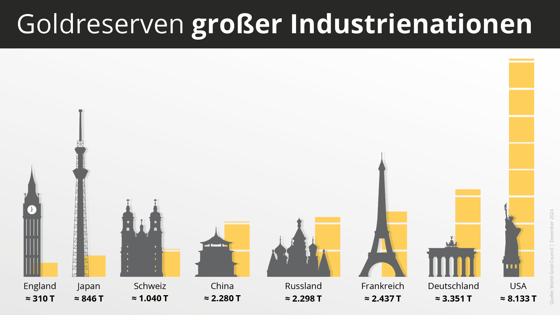 Die Deutsche Bundesbank hält und verwaltet die Währungsreserven Deutschlands. Gold ist neben Divisen und Forderungen an den IWF (Internationaler Währungsfonds) Teil der Währungsreserven und es wird auf vier verschiedene Lagerstellen verteilt. Die deutschen Goldreserven befinden sich daher bei der Deutschen Bundesbank in Frankfurt am Main und den beiden Partnernotenbanken Federal Reserve Bank in New York und Bank of England in London. Die Bundesbank hält Gold unter anderem um Vertrauensbildung zu betreiben, wegen seiner universellen Akzeptanz, zur Diversifikation und der vergleichsweise geringen Risiken durch Schocks.