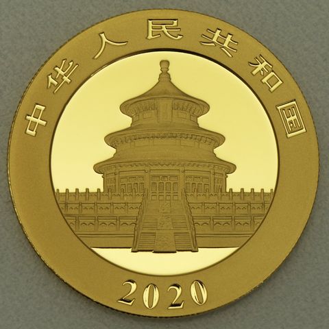 Auf der anderen Münzseite ist bei allen Pandamünzen der sogenannte Himmelstempel (chin. "Tiantán") aus Peking zu sehen. Anstelle einer Abbildung des ganzen Tempelkomplexes, ist auf den Münzen die Darstellung der "Halle des Erntegebetes" (chin. "Qiniandiàn") zu sehen. Diese runde Tempelhalle mit großer dreistufiger Marmorterrasse und dreistufiger Dachkonstruktion wurde 1420 von Kaiser Yongle erbaut und diente den Kaisern als Gebetsort für gute Ernte. Über dem Tempelbild steht in chinesischen Schriftzeichen "Volksrepublik China" und unten das jeweilige Prägejahr. Die Gestaltung des Schriftbandes ist über die Jahre leicht verändert worden, wobei die Tempeldarstellung nahezu unverändert blieb.