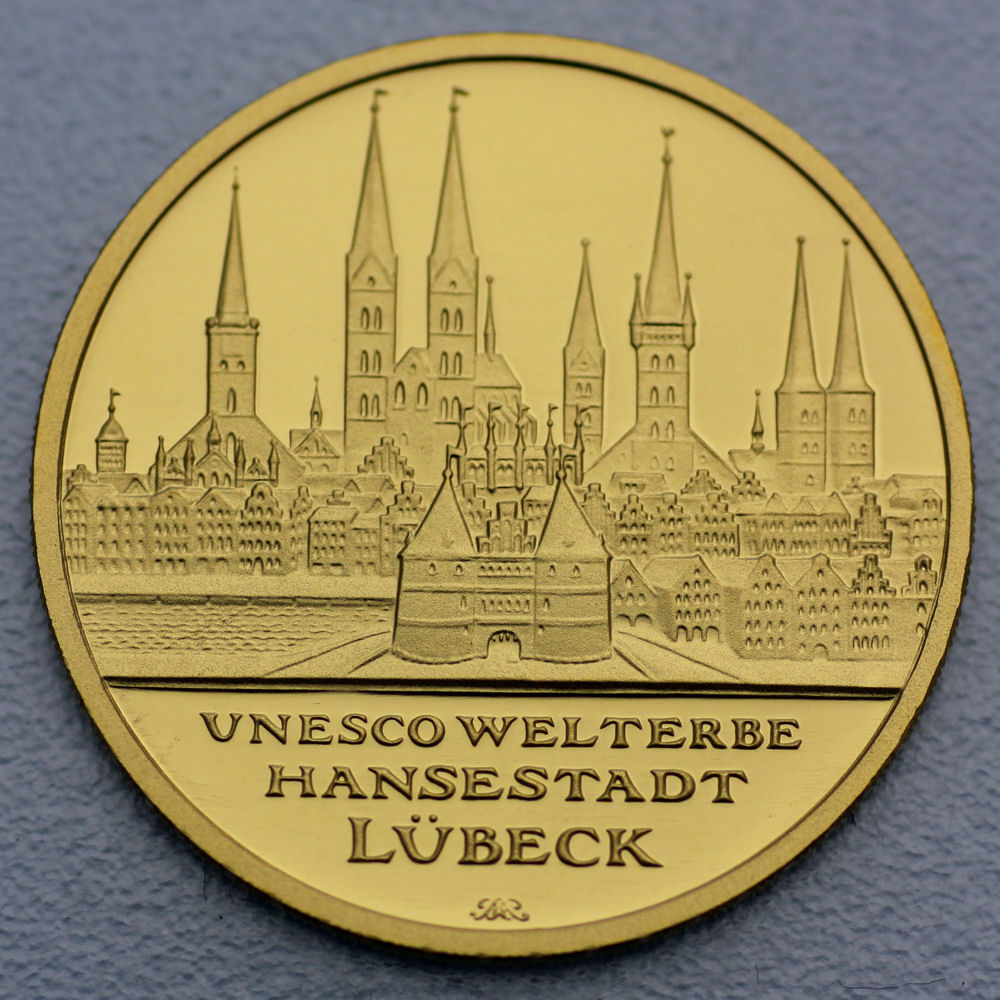 Mit der 100 Euro-Goldmünze zu Ehren der Hansestadt Lübeck setzte die Bundesrepublik Deutschland im Rahmen ihrer "UNESCO Welterbe"-Serie die numismatische Würdigung herausragender deutscher Kulturstätten fort.