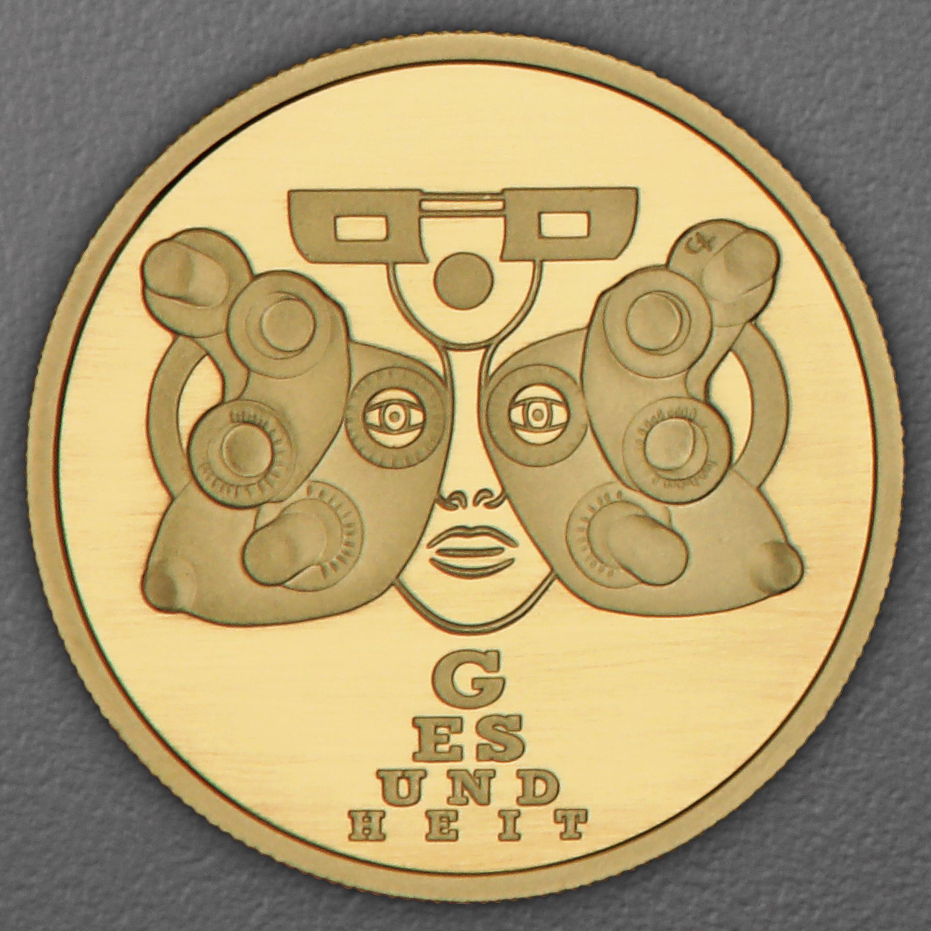 2025 zeigt als Motiv einen sogenannten "Phoropter" vor einem schemenhaften Gesicht. Es blickt in Richtung des Betrachters der Münze durch das im Gebiet der Augenoptik angewandte Gerät nach vorne. Unterhalb liest sich der Titel in Großbuchstaben, über vier Zeilen von oben nach unten folgendermaßen getrennt: "G-es-und-heit".