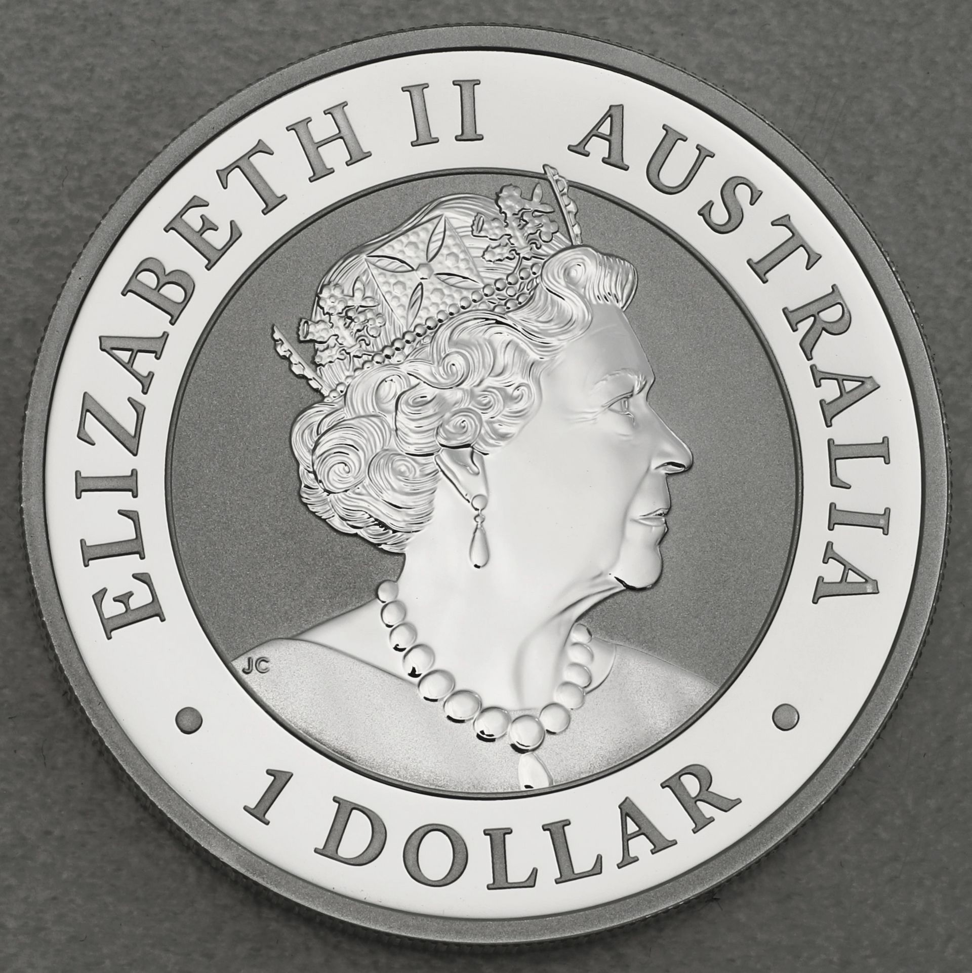 Auf der Kopfseite zeigt die Münze das glänzende Porträt von Queen Elizabeth II, dessen Umfeld matt gehalten ist. Sie blickt zur Seite hin und trägt eine Krone, wobei das Bildnis eine generell sehr realistische Optik besitzt. Ergänzt wird die Darstellung im abgetrennten Rand durch die Angabe ihres Namens, außerdem wird mit "AUSTRALIA" das Ausgabeland genannt und der Nennwert von 1 Australischem Dollar findet Erwähnung.