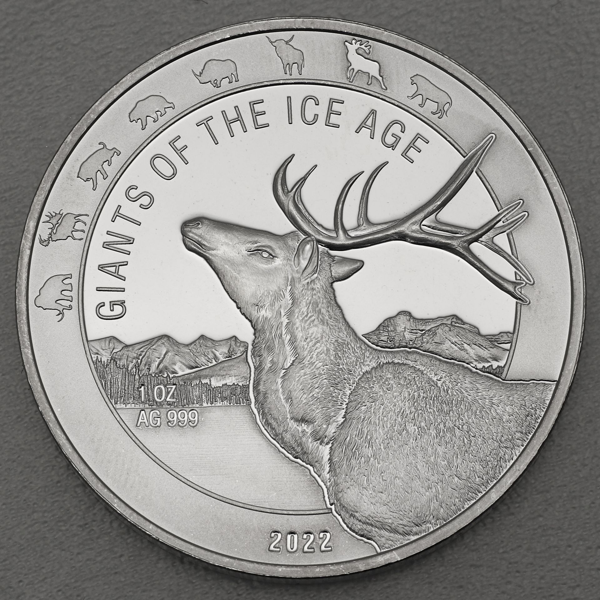 Die Serie "Giants of Ice Age" wird seit 2019 von der Leipziger Edelmetallverarbeitung (LEV) als sogenannte Agenturausgabe für Ghana geprägt. Insgesamt umfasst die Reihe 8 verschiedene 1oz Motive der Eiszeit in limitierter Auflage von 15.000 Stück. Der Rand der Münze verrät die kommenden Motive, wobei das aktuelle Motiv vertieft geprägt ist.