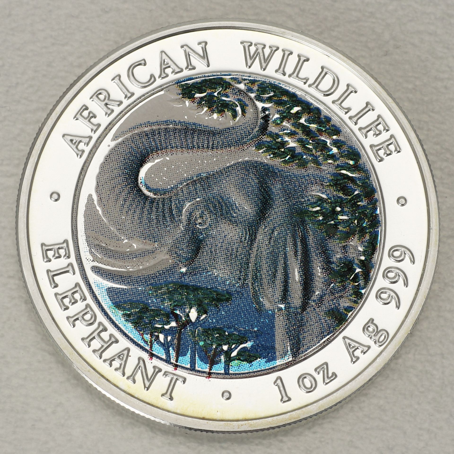 Neben der Bullionversion gibt es die Elefant Silbermünzen der Serie "African Wildlife" auch als kolorierte Silbermünze und als teilvergoldete Ausgaben.