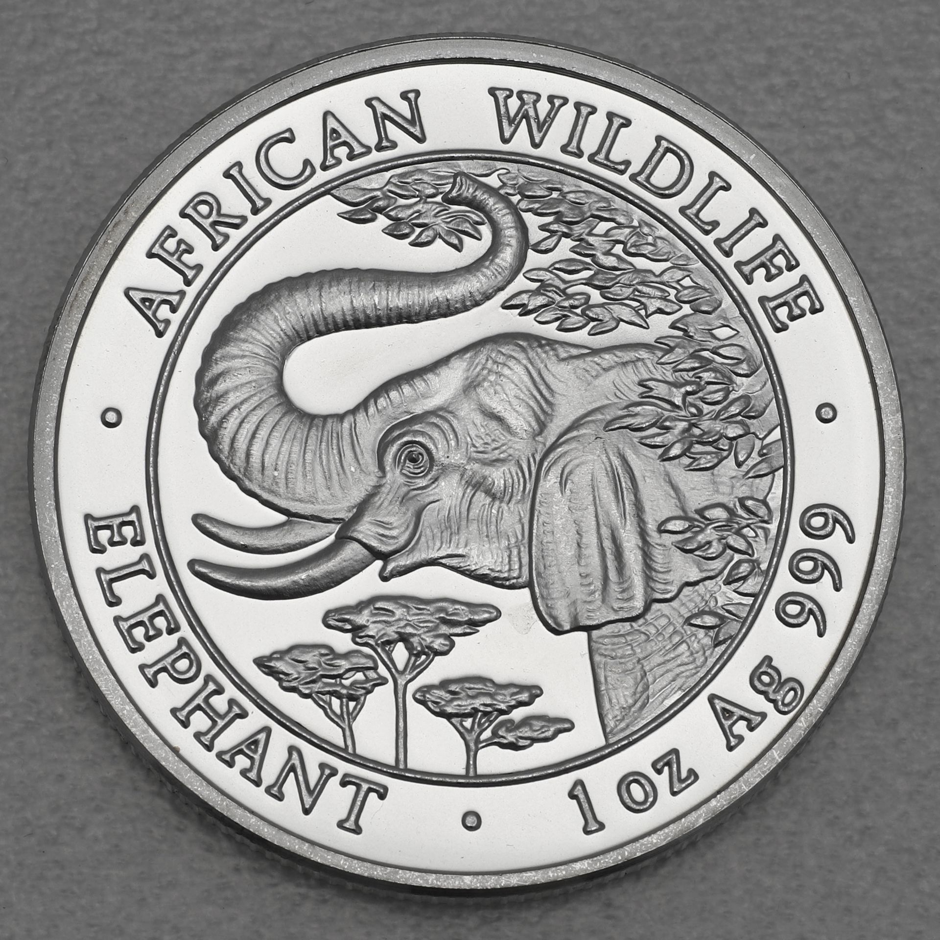 Der Vorläufer des Somalia Elefanten war die "Sambia Elefant"-Reihe der "African Wildlife"-Serie, welche von 1999 bis 2003 geprägt wurde. 2004 erschienen die ersten Silbermünzen mit Motiven des Somalia Elefanten. Die Agenturausgaben wurden zunächst vom Bayerischen Hauptmünzamt geprägt und ab 2014 prägte die Geiger Edelmetalle AG in der Schweiz unter Lizenz des Ausgabelandes Somalia die Silbermünzen mit jährlich wechselnden Elefantenabbildungen.